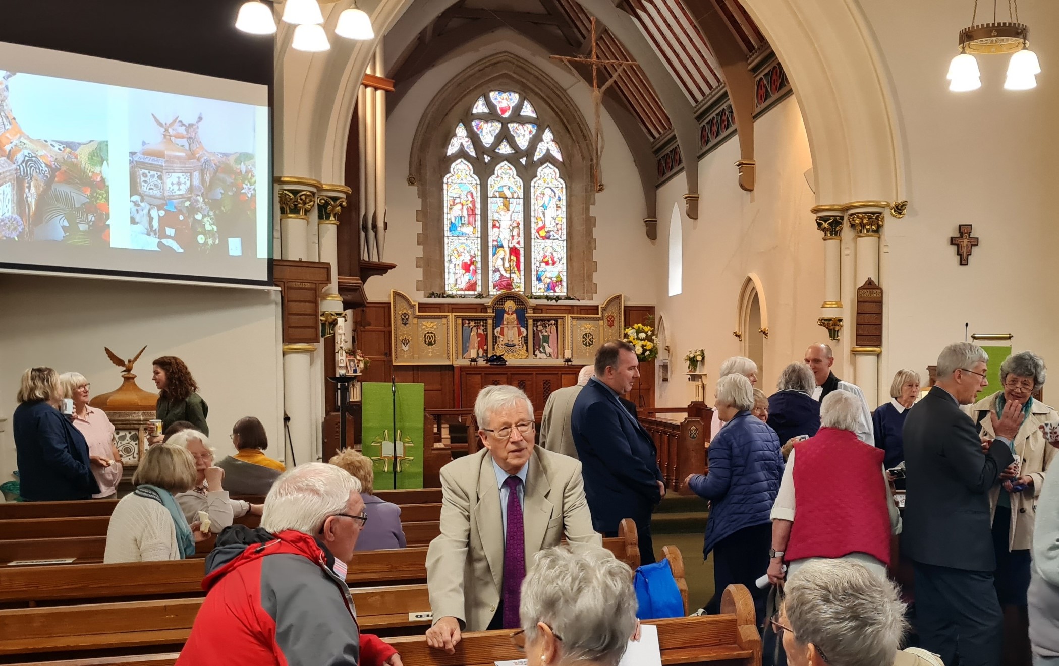 After some concern we might miss it – the coach driver couldn’t find the de-mist button – we duly arrived to a warm welcome from the members of St Mary the Blessed Virgin. The Bishop of Bradford led the service, with other church officials, hitting just the right balance between legalise and informality. I think most of us still think collation is a printer setting and have no idea why new Vicars have to be collated.